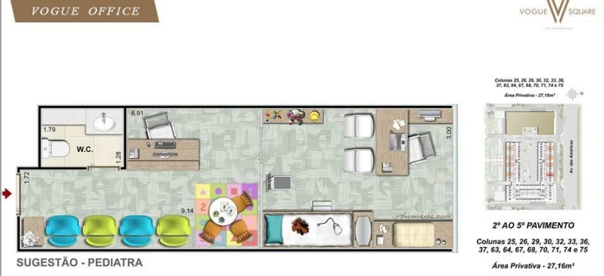 Salas comerciais de 23m² a 67m².