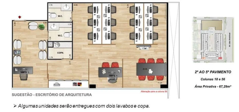 - Algumas unidades com dois lavabos e copa